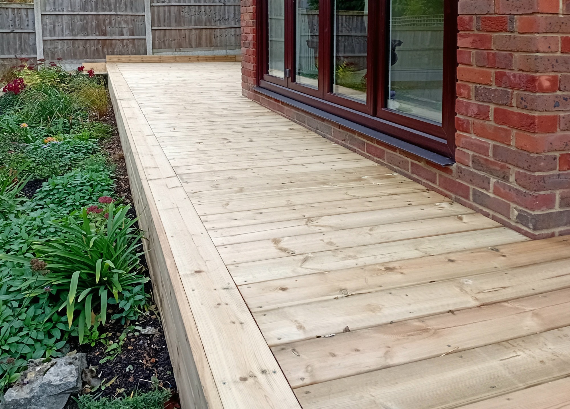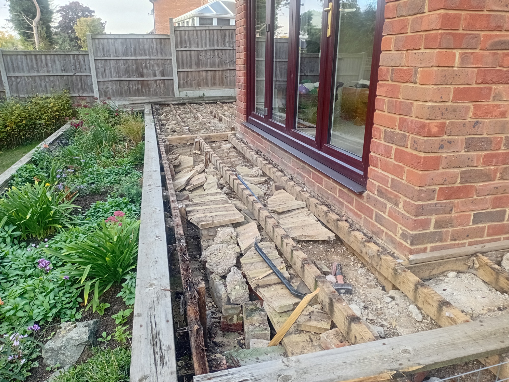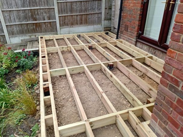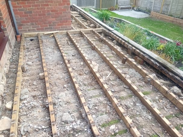 Existing rotten decking repaired and extended to accommodate garden table and chairs